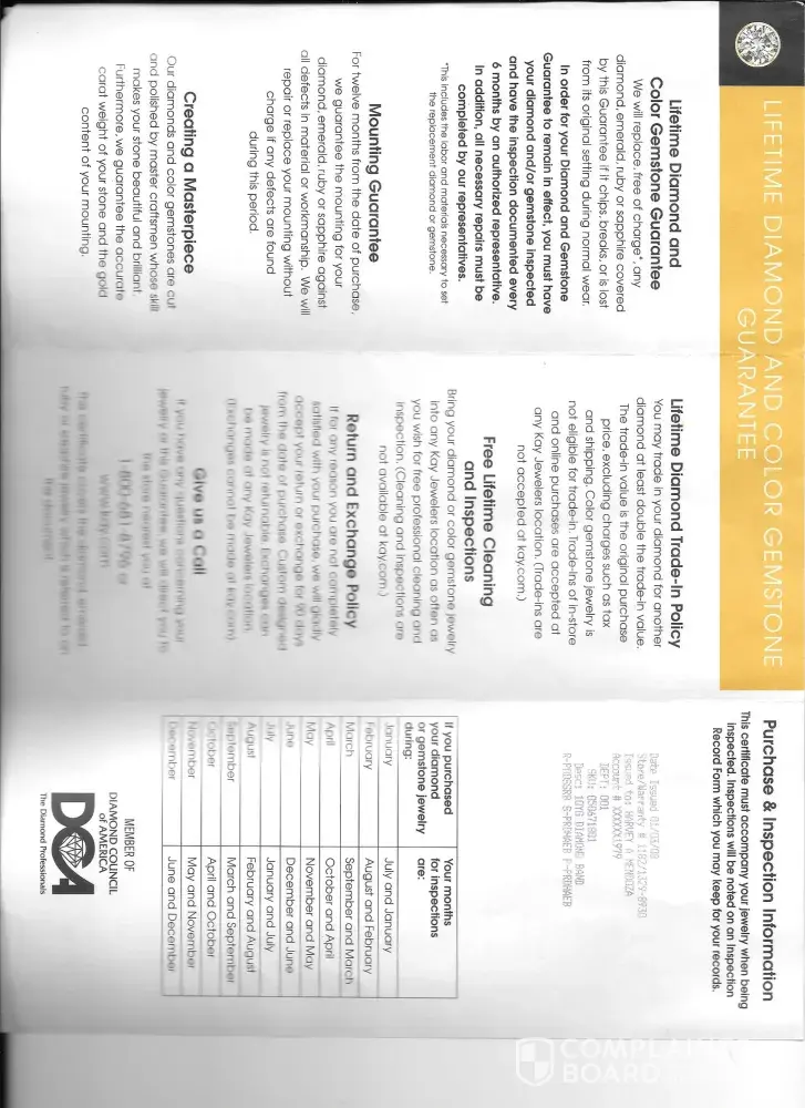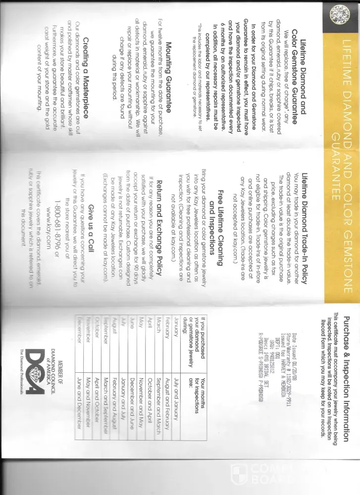 My husband and I bought a bridal ring set in 2008 with a lifetime warranty. Recently one of the diamonds broke and fell off. I went to the nearest Kay Jewelry and the manager told me that I had to pay $600 dollars in order to fix my ring, with lifetime warranty it should be already covered and I should not have to pay for anything to get my ring fixed because when I bought it that is how they explained how the lifetime warranty is going to be. I have bought jewelry from Kay all my life and never had any issues with getting my jewelry fixed until now. I also explained to the manager how I wasn't always able to bring my ring in to check it because I am disabled and can't drive and due to the pandemic it is harder for me to get out, but he still said I needed to pay that amount. I just want my ring to be fixed before my 25th year wedding anniversary.
