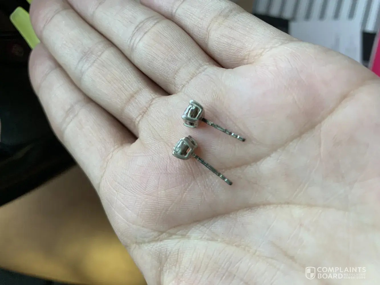 Two of the black diamonds fell out of the one side. Waited and waited, way past, on the pickup time on my receipt and which I was guaranteed, to be finished by. Called and called, called the days kept getting longer and the excuses kept getting ridiculous. So finally it's in and i'm alrady pissed. So they decided to give me $100 gift card...
