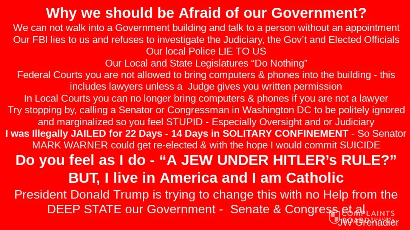 The State of Virginia and the Federal Courts have colluded together with their Judges to CRUCIFY Janice Wolk Grenadier. We in the United States of America needs to "Wake Up" https://amlegalnews.blogspot.com/2019/08/the-rule-of-law-in-usa-lost-due-to.html