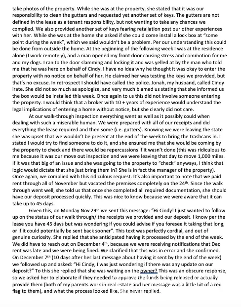Short story: Agent is a horrific bully who also violated laws (sending someone else, not even herself to enter our home without notice). I believe that as a broker for KW, even though most of this occurred as she was representing her own business, her credentials are still a broker through KW and she needs to be held accountable as such.