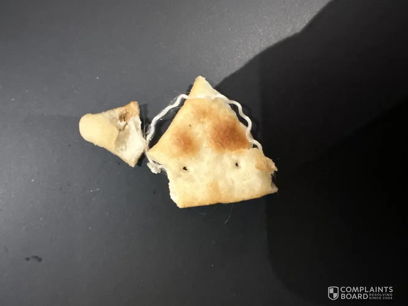 Imagine my horror when I was munching on Kellogg's TownHouse pita crackers December 15, 2023 only to find two of the crackers "glued" together with what appeared to be a piece of used dental floss.