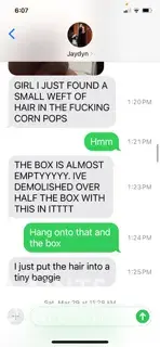 Daughter got down to 1/4 remaining box when she found about 15 rodent hairs wadded together by an oily, waxy, yellowy clump that had semi-even, ripped-out hair shaft endings. Non-human hairs have variegated tones of black, browns, and tans throughout all strands (I saved them). She sent me a pic of her find March 28th, 2025, placed the hairs in a small...