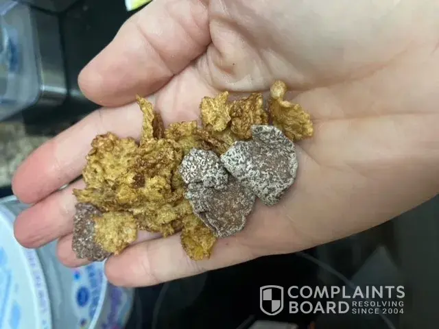Some thing in my cereal put a HOLES in my dentures It was so HARD! I still have the 2 pieces of what ever it is.. I have pictures of the "2" what ever they are & pic's of what it did to my Dentures! I don't want money, I JUST WANT MY DENTURES replaced! I'm starting to get sores in my mouth! I still have the Box & a little cereal. It only has "1" of the best bought by numbers!