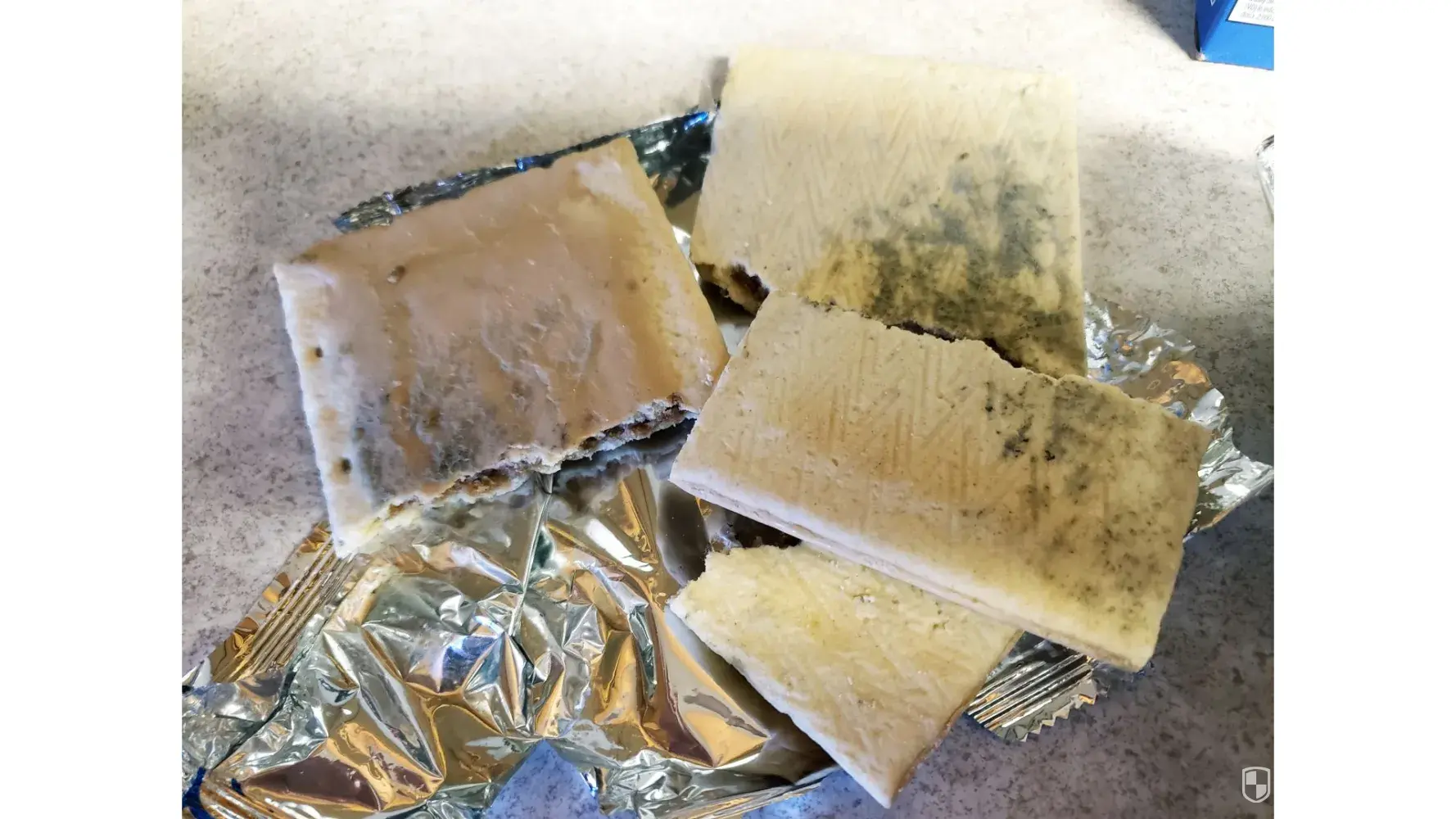 I opened a package of brown sugar cinnamon pop tarts while working & tore a piece off to eat. Luckily, I looked before I put in in my mouth. When I saw it, I tore the package all the way open & saw they were covered in mold. I had another pack with me & opened them to discover the same thing. I've never had this happen before. I will check when I get home to see if I still have the box.