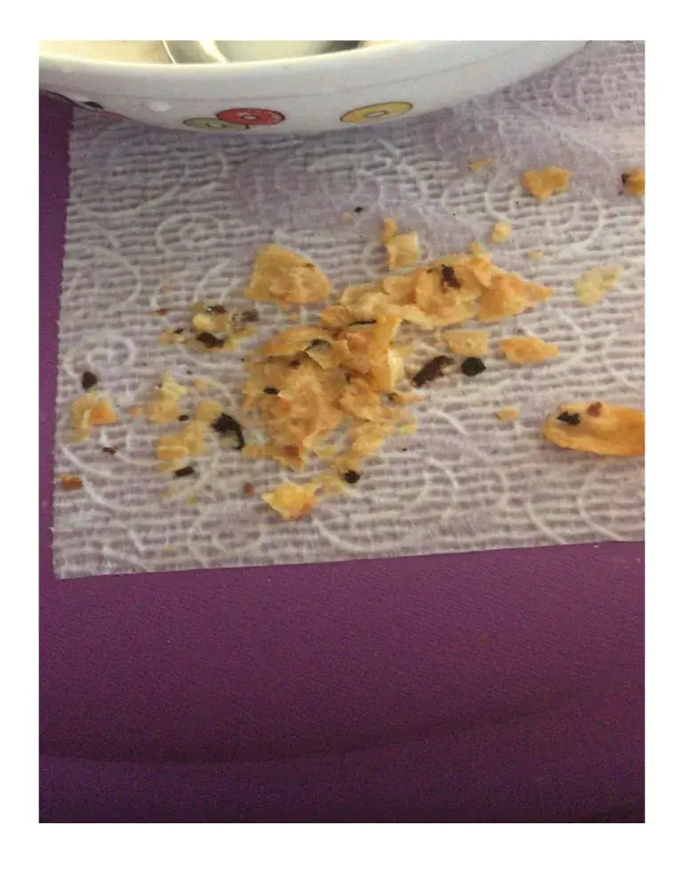My son said it was my wake up for not turning on the lights, but I expect everything to be in its place, including my food. I just ask that you be more mindful of your product. A bag under half an ounce may not cause serious damage to an adult but could be fatal with a child knowing how children can be.