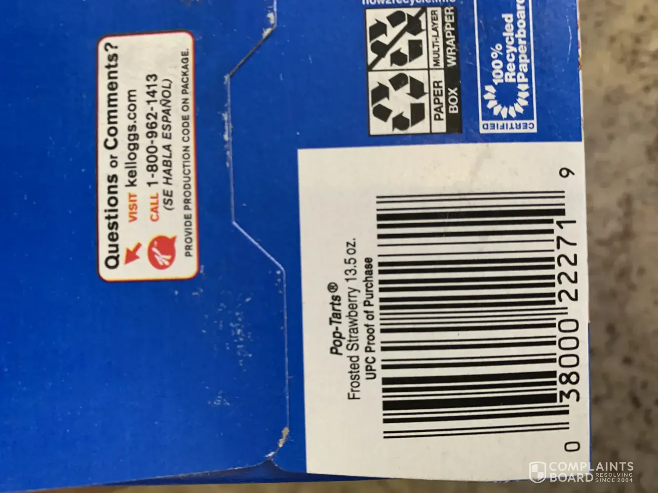The entire box was filled with the same disappointment as that first package. The disappointment enlarged as I began to notice that my children were leaving behind the unfrosted and half eaten packages of pop tarts in the box. Apparently they don't enjoy the unfrosted one's as much as I. Growing up in a low-income family where food wasn't I was easy to abundant with six siblings and one single father raising us all on his own, it really upsets me to see food being waisted... I understand what my father was saying now that I am the single parent trying to raise my children with a low income household. The fact of the matter is is that I went into Walmart and bought one of those giant boxes that is over $10 have your Kellogg's frosted strawberry Pop-Tarts, you know the one that comes with like 48 in a box.. well anywho I surely hope that Kellogg's can keep my family as regular customers by acknowledging the misfortune that has happened and by correcting the situation as best as they can. I look forward to hearing from you but until I do my family is boycotting the Kellogg's brand until they prove their worth.