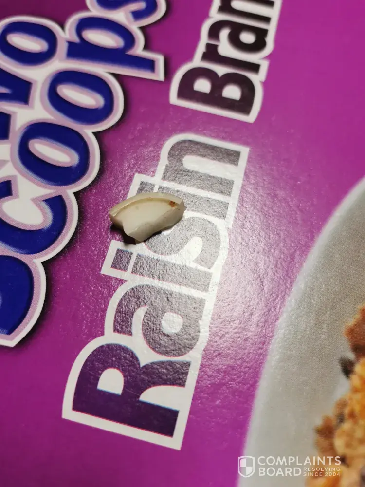 Made breakfast this morning and chewed into a piece of hard plastic. Looked like a bit off a plastic wheel. That had broken off, it stabbed my gum and it bled for awhile. I'd just opened the box and I decided it wasn't safe to keep. I've been eating raison ran everyday for the last 20 years and this is the only issue I've had so far. Thanks...