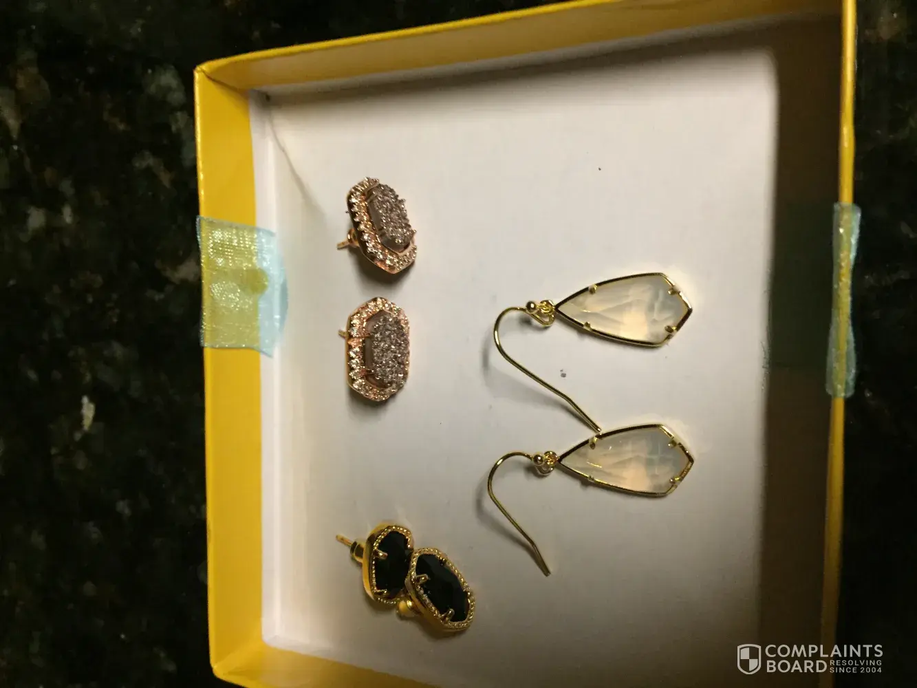 BEWARE! This is the bogus site I ordered from: www.kscottjewel.com. They advertise on Facebook. I ordered three pairs of earrings for $55 and got three but it wasn't what I ordered. They were the cheapest earrings and probably aren't worth more than $3. SCAM! I also got charged $62.50 instead of $55. Chase flagged it as fraud but it had already gone through. I feel like an idiot and mad that people get away with screwing people like this. Here is a picture of the wrong and cheap items.