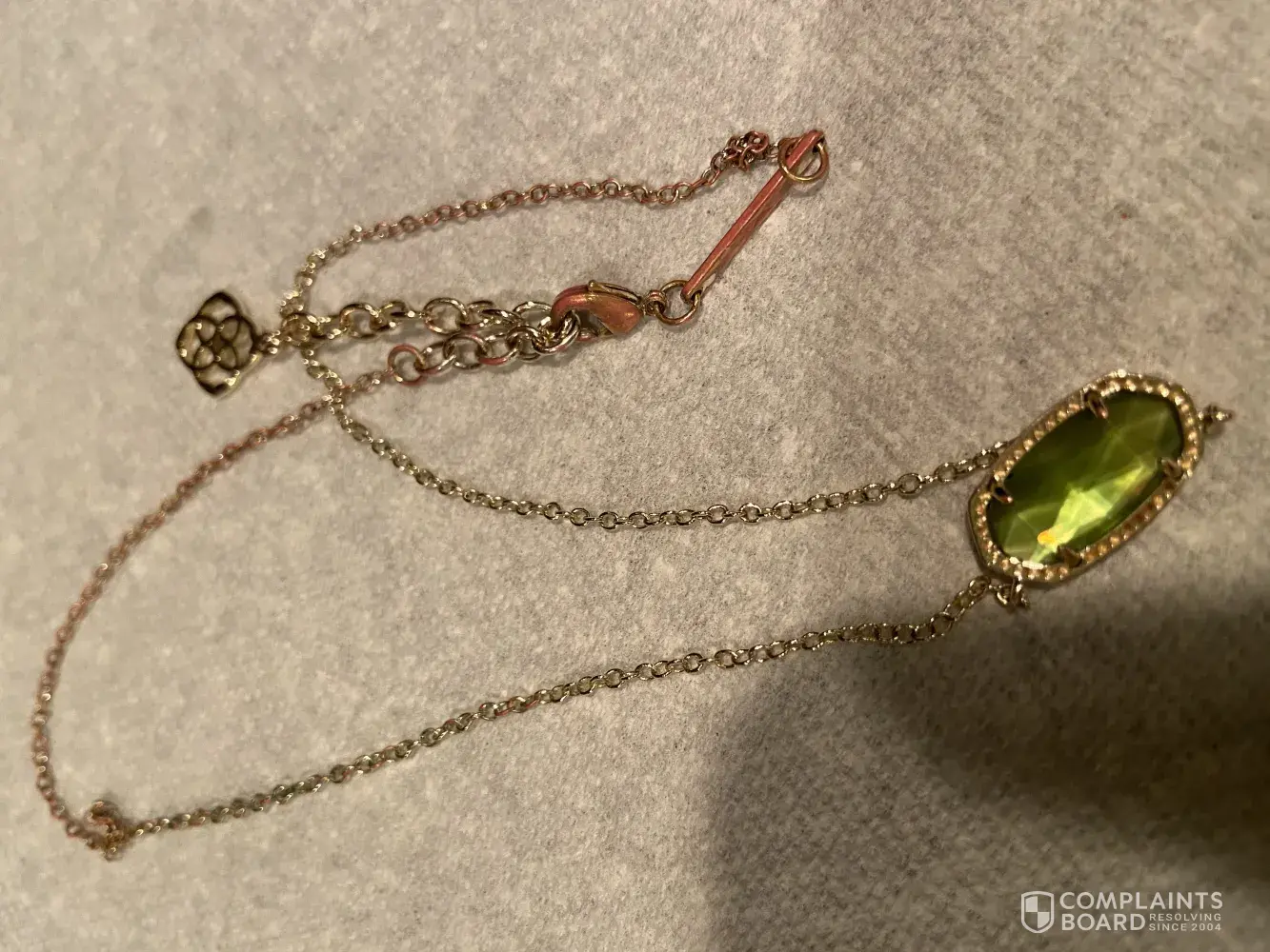 I’m complaining about is what is the use of even buying and even wearing a Kendra Scott necklace when literally everything that a woman uses or needs in her daily life such as perfume, lotion & washing our bodies with soap. It would be no use to put the necklace on when you have to turn right around and take it back off so you don’t get soap on it along with everything else. This is the stupidest thing I have ever heard, make the jewelry to wear if we’re going to pay as much as we pay for this jewelry make it to where we don’t have to worry about all this. Look at James Avery look at Brighton. We don’t do that with their jewelry. I have a Kendra Scott necklace as well and not even a month after wearing it it tarnished and once it tarnished, it started having a weird smell to it and turned my neck green. What are you people doing to satisfy us as customers that pay a lot of money for her jewelry to make us happy?