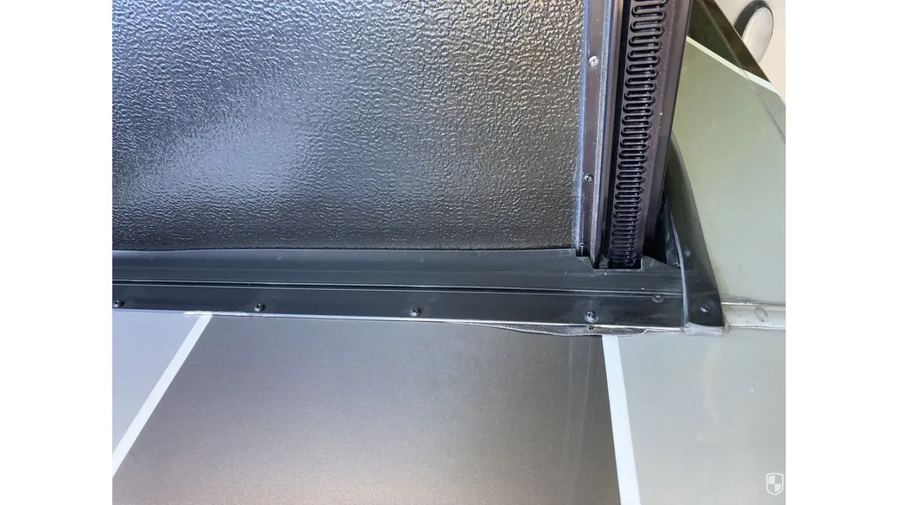 6) Trim above the dinette and couch was not fully attached, falling down.