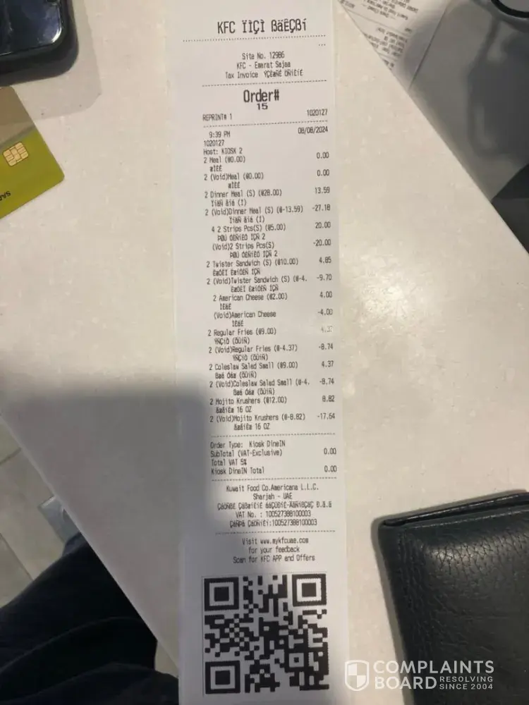 Contact KFC's customer service to report your experience and the issues with your order. Provide the details of your visit, including the time and location, and mention the incorrect charges and missing items. It's helpful to express your expectations for resolution, whether it's a refund or a correct order. Keep it straightforward and fact-based to help them address the problem effectively.