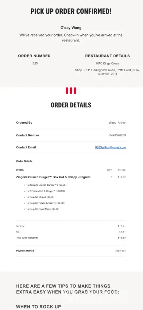 Dear Manager, On 16/03/2025, I purchased 1 x Zinger® Crunch Burger ™ Box Hot & Crispy - Regular from KFC app (Kings Cross). I recently placed an order through the KFC app, but the restaurant location was incorrect. I intended to order from KFC Green Square, but the system placed my order at KFC Kings Cross instead. I attempted to modify the location...