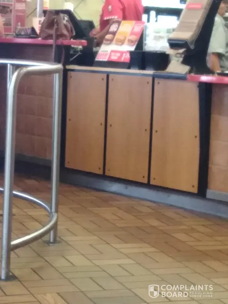 no belt! This really cooks my goose to see someone that looks like this prepare my food or even hand me a tray! I'm a manager and if I had one of my employees walk in looking like this they could go back home. I've ate my last meal at this location. It's sad they have remodeled this location and it looks very nice! They need to work on employee dress code!