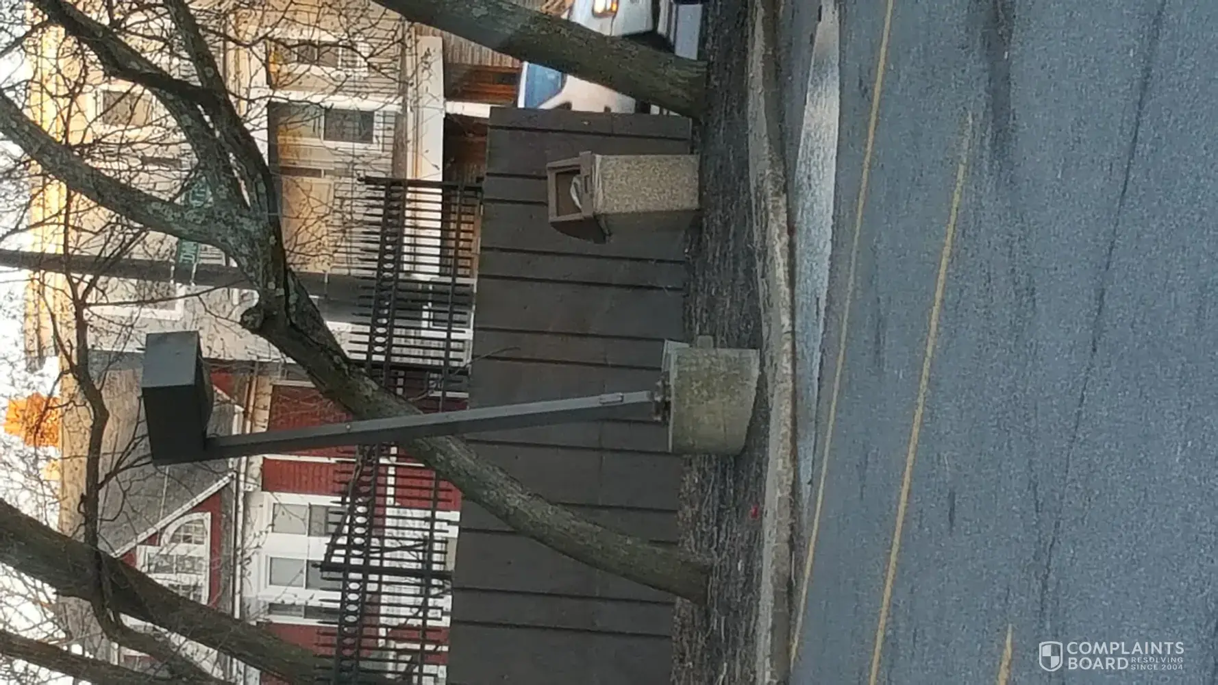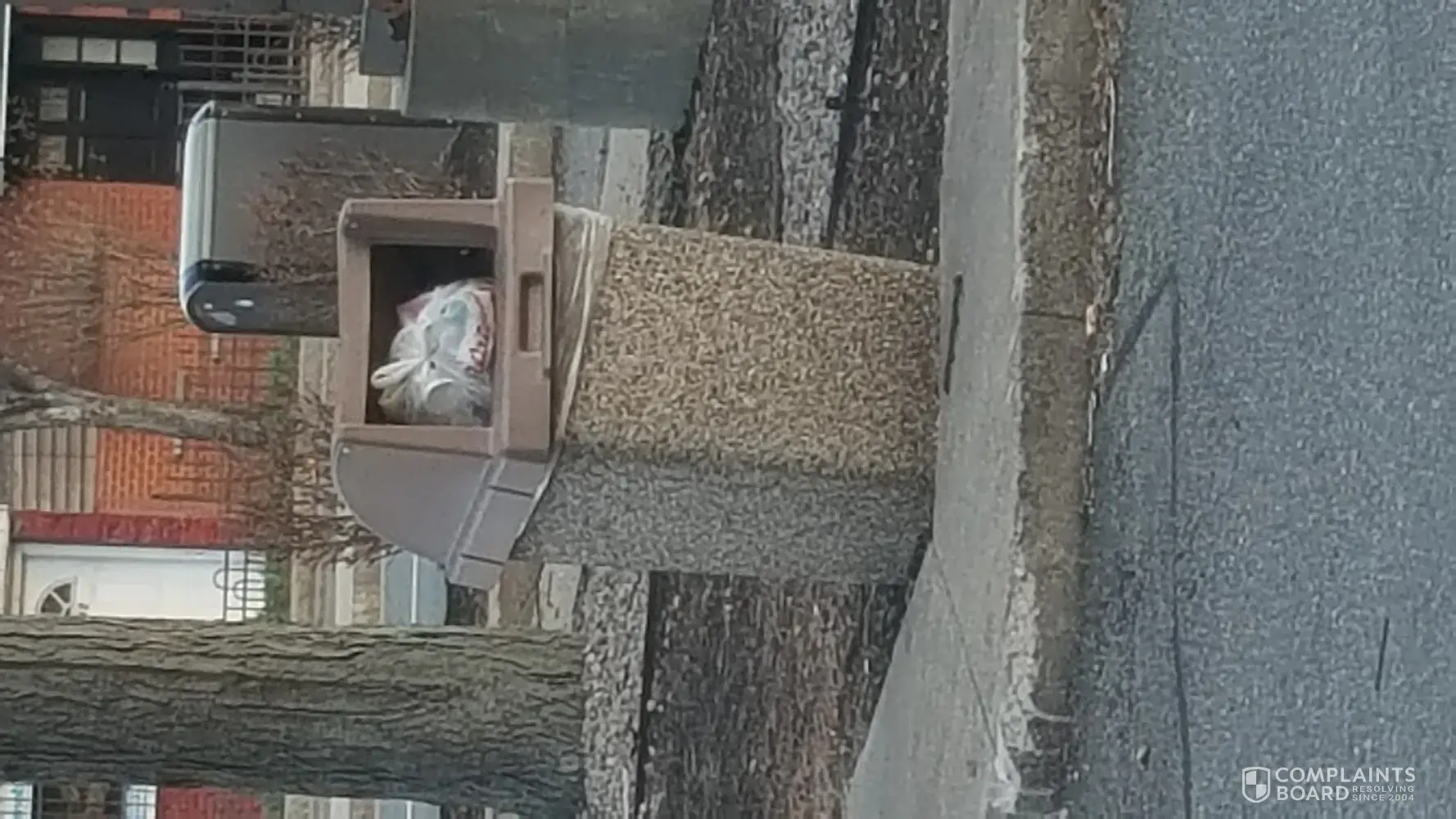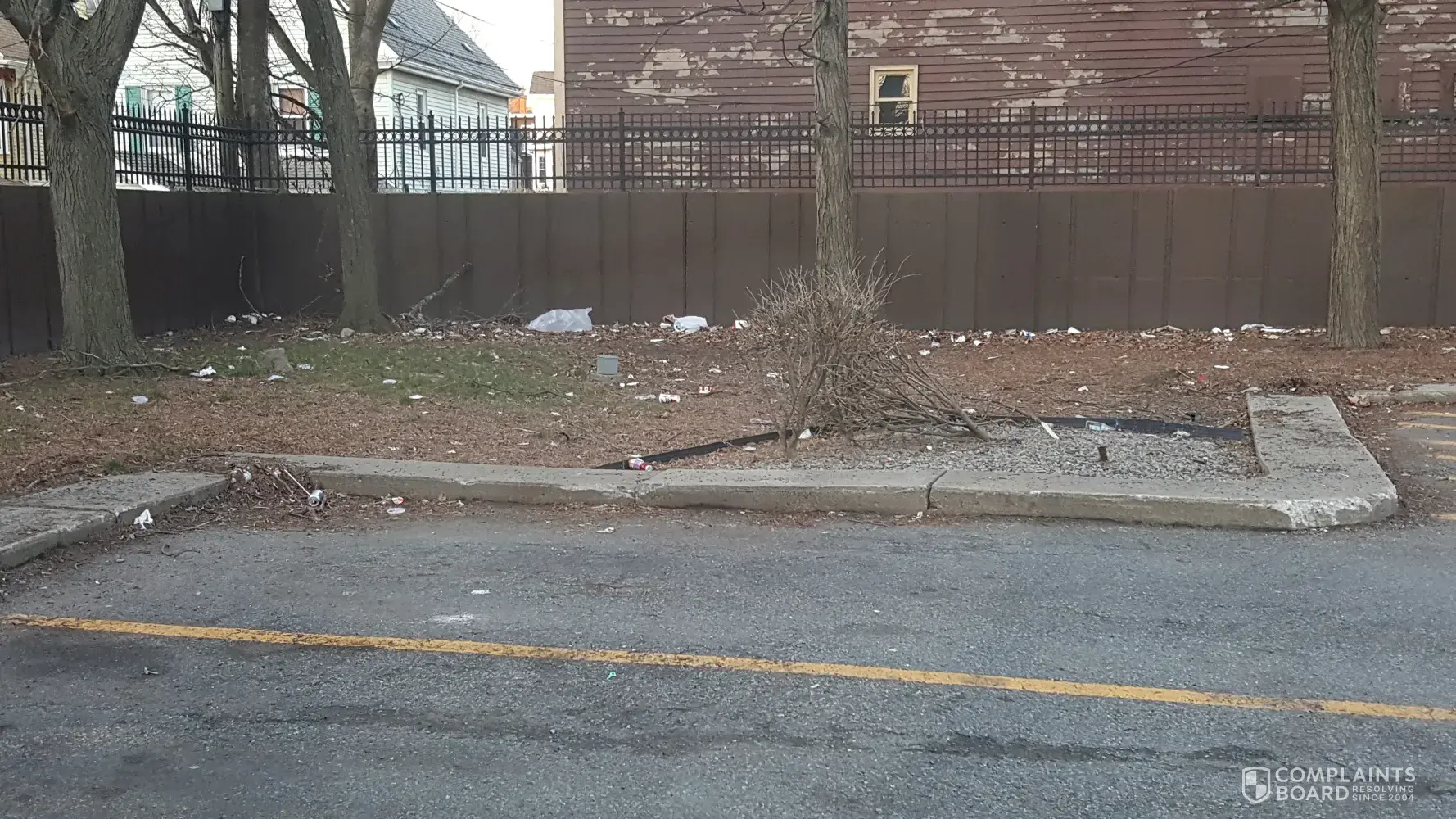 unkempt parking lot / dumpster / trash can / trash all over the property