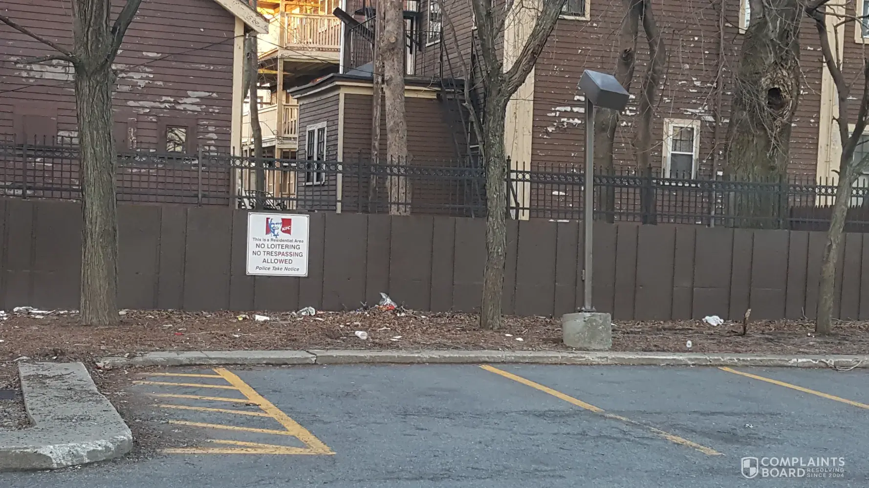 I am at the Dorchester Massachusetts KFC the parking lot is disgusting there's trash all over the place the trash is not even put into the dumpster, is on the ground in front of the dumpster. Dumpster is right in the parking lot so you can see how disgusting it is doors to the dumpster open. It has been like this since Monday and today is Thursday.