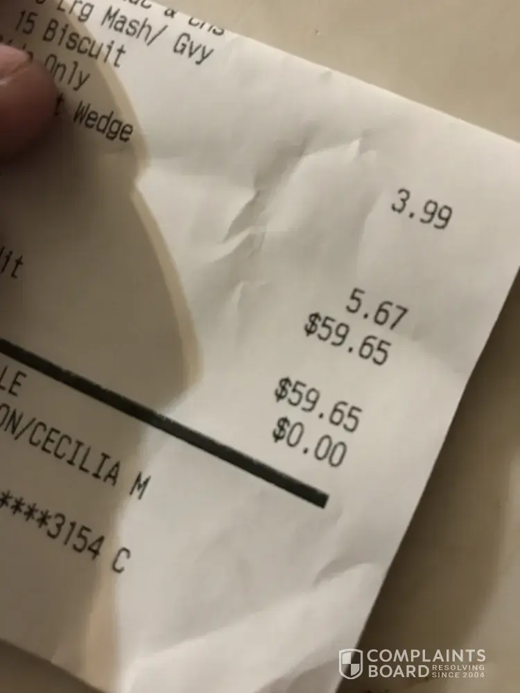 There is a chemical taste in the food. Could be from storing food in warmer in styrofoam containers or could be something wrong with the burners in the warmer unit itself. We bought a 16 pc bucket with 4 large sides and a popcorn chicken share bucket. The only sides that have no chemical taste are the biscuits and the coleslaw.
