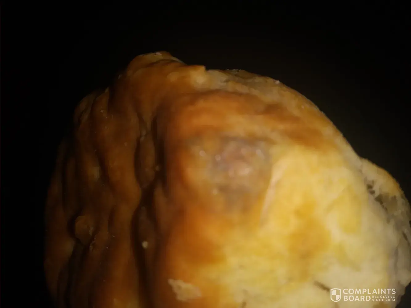 Make a long story short. Bought three fill up boxes two days ago.. One of the Biscuits had mold green mold and was hard as a rock. Second meal breast was red inside uncooked.. Returned both .. The Manager Angel was ruined.. Told me sometimes the Biscuits it contaminated. From the paper on top.. As if no big deal.. No apology. I do not live close bye.. I do not appreciate the attitude. As if I did something wrong.. He said he was going to contact corporate. But he did not take my information..I have my pictures..