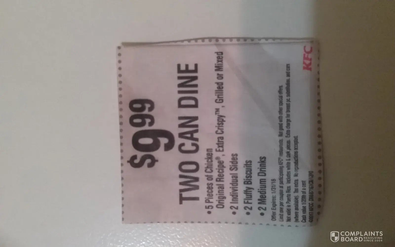After I was refused I left and went home and called two of your other restaurants and couldn't even get them to answer their phone. And if you're advertising for KFC the ads should be honored at all your restaurants. Why do you expect the consumer to call all your restaurants to see if they excerpt your ad.