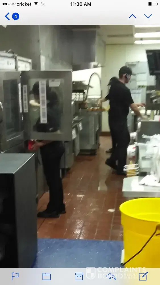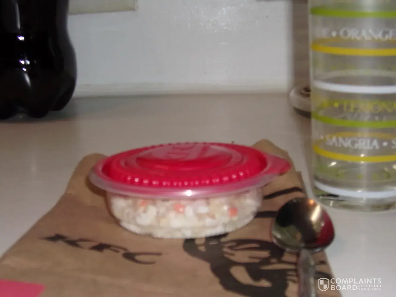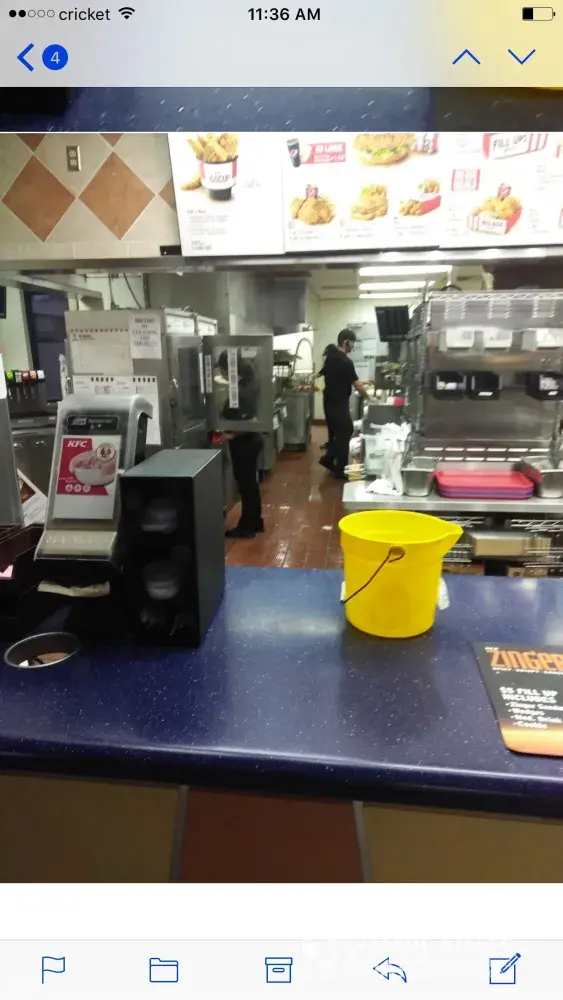 I knew I should have turned around and left, but the craving for KFC was stronger than what I was looking at. There was a dirty bucket on the counter, the prep area was dirty with water thrown all over the floor with the employees cooking and walking through it.