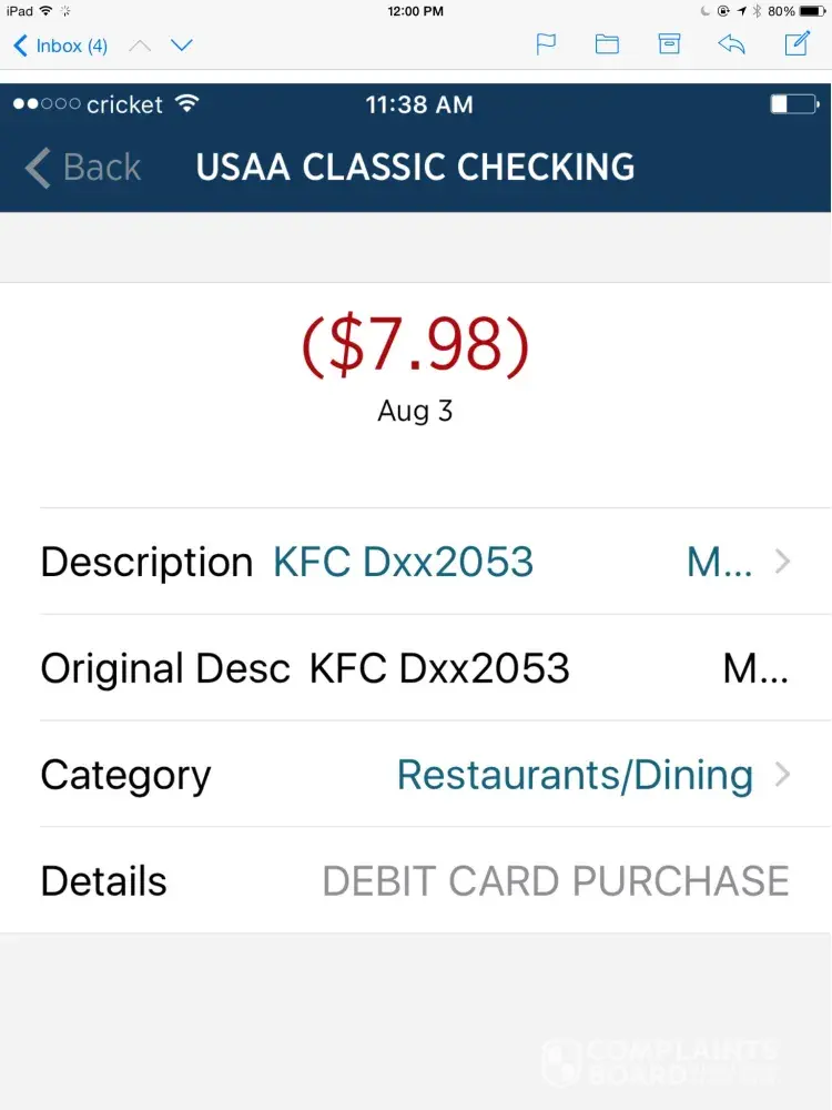 (See picture) And one last thing. Th city closed them down last month because cleaning problems. I will never visit KFC again. I have been going to KFC since I can remember and I am 54.Churches here I come.