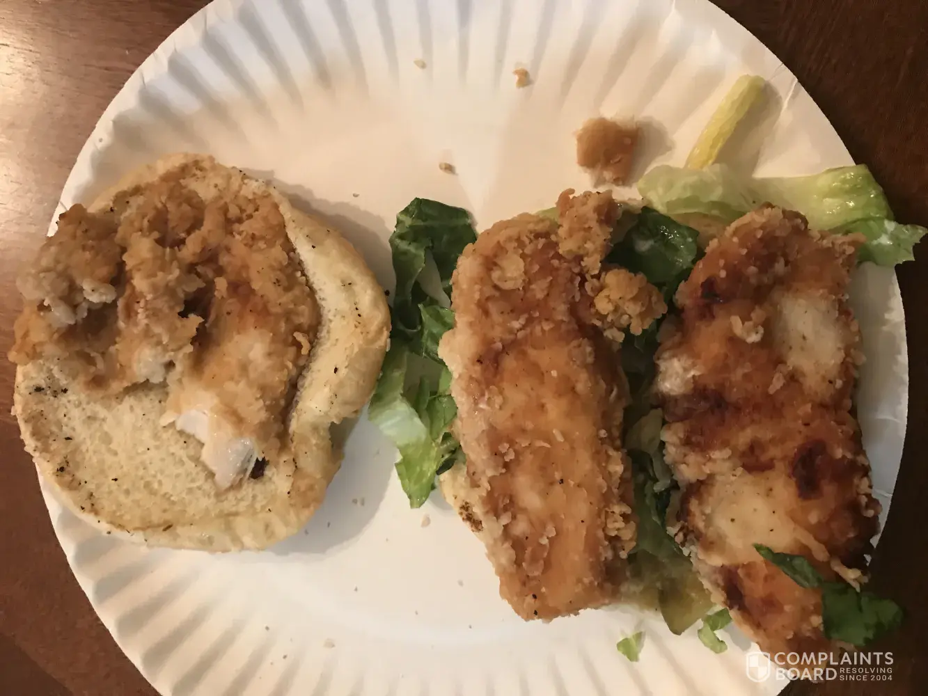 On Wednesday, July 26th, 2017, around 6:30 pm, I went to KFC in Greenville, Mississippi. I ordered the chicken tender meal, what concerns me is the chicken seemed like a chicken by product. It was flattened chicken, maybe a 1/8" thick, battered and fried.