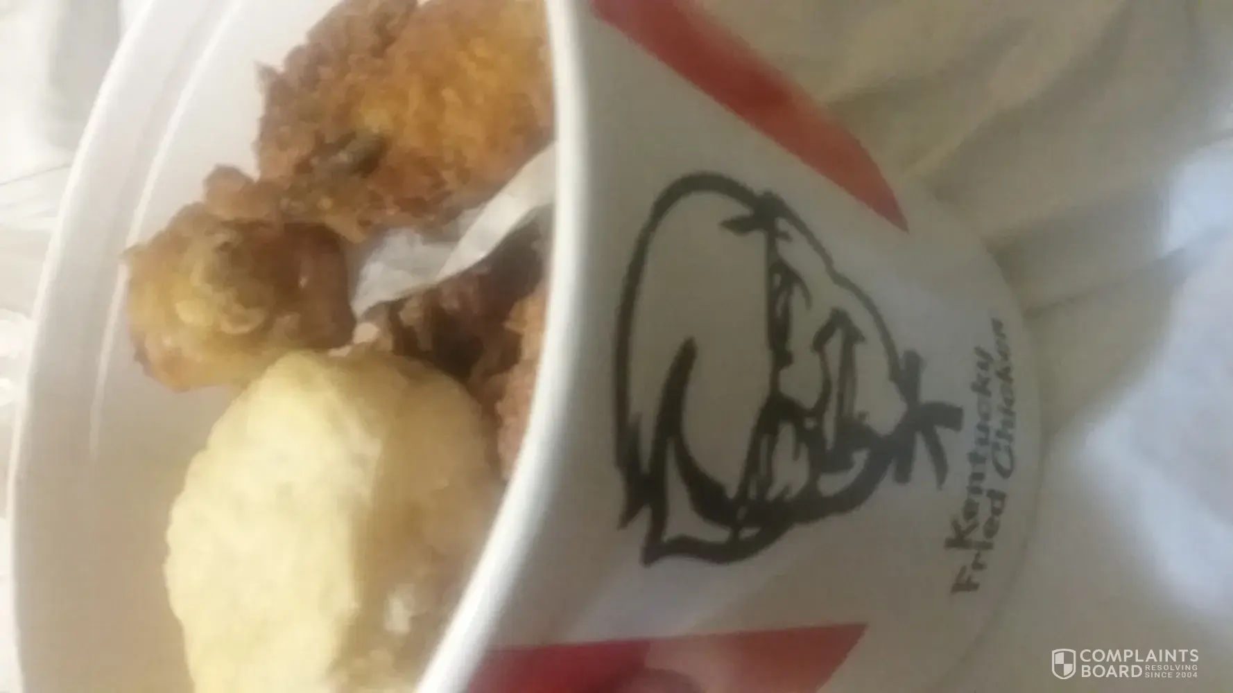 The biscuit was cold and hard. The chicken strips were hard and rubbery. Also green beans and macaroni and cheese(which tasted bland) were my side items but there was no fork provided. The female who took my payment at the drive thru window was not rude but was not friendly either, and did not greet me. She did not confirm my total once I got ready to pay she just took the cash from my hand. If I was not on my lunch break and actually had the time, I would've gone back to complain to the manager. I've had wayyy better from KFC in the past. I hate spending money and not satisfied with the food and/or service.