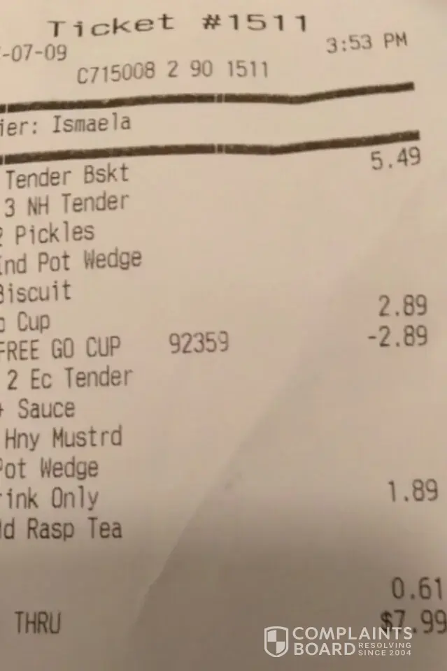 I stopped by the KFC in Duncanville TX on my way home from work to buy the Nashville tenders with wedges and got burned tenders on one side and Cole slaw I purchased a drink and it was watered down with no taste