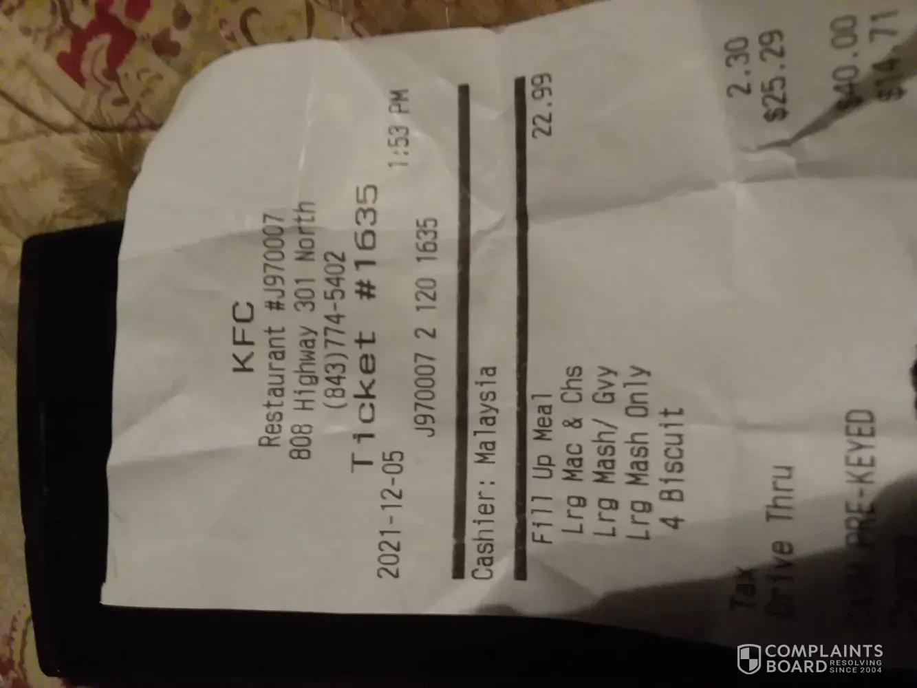 KFC Restaurant G410075 2 264 2626 ticket 2626 5.09pm 12/12/21