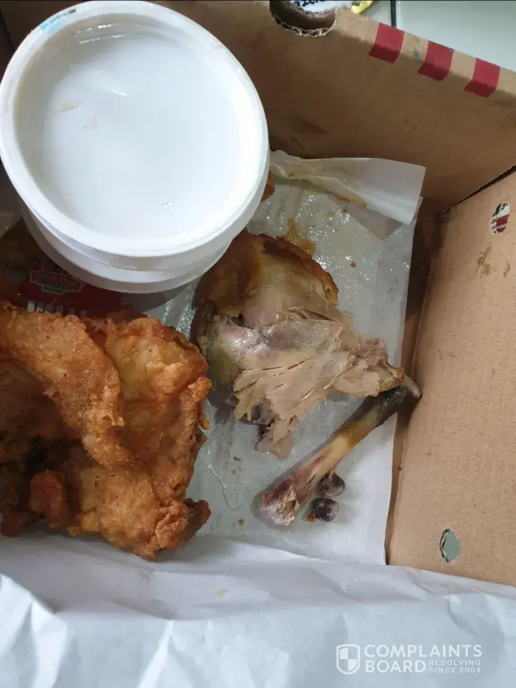 Chicken is dry, rock hard, the potato and gravy is most time only 3/4 full.The Chips not even full, worst part is don't care. What they give you in chicken is shocking.paying $31.95 for dry chicken, half filled potato and gravy, and chips.Pictures speak for them selves.Going plast this over Facebook, but every one gets chance to fix the problem.