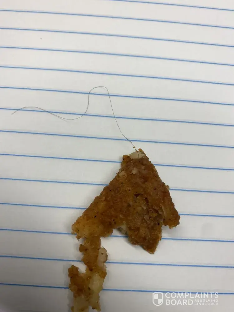 I went to KFC / LJS (5681 Memorial Dr, Stone Mt GA) ticket #1268. I saw a large hair on my chicken breast. I went back to the store to discuss the concern. The manager was given the meat w/ the hair on it to review. She discussed poultry processing concerns. She offered me another meal but I became displeased. I am sadden about the customer svc and filth.