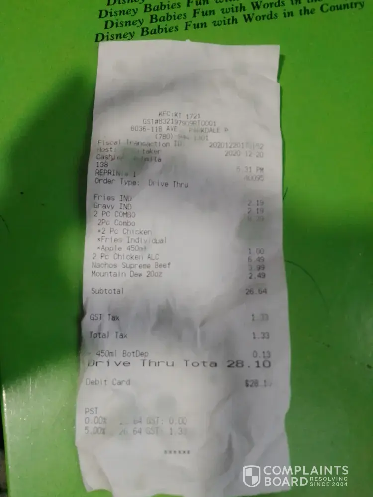 Read full complaint21 pieces chicken bucket I purchased earlier on today