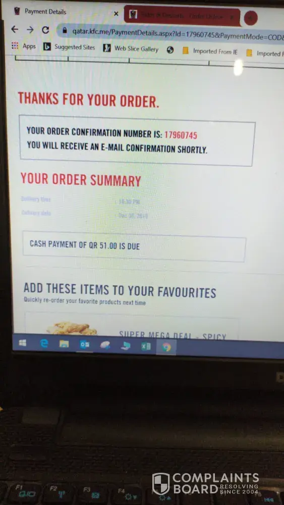 A very disappointing and unfortunate moment I have ever experienced with KFC doha I placed an order 9:30pm and till 11:50 there prefer was delivered even customer services office was Called and there was one lady answered she lied three times that your order is about to get deliver .