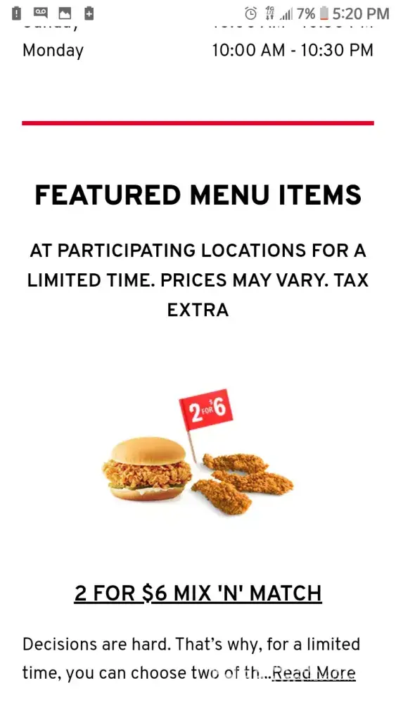 11/1919 4:30 PM So i go to order at my local kfc Go to cashier and ask for the mix and match 2 for $6.00 There were several options either chicken sandwich chicken pot pie Famous Bowl and several other items I was going to order four of the chicken pot pie and four of the famous bowls that would have completed my order but the young man cash register said...