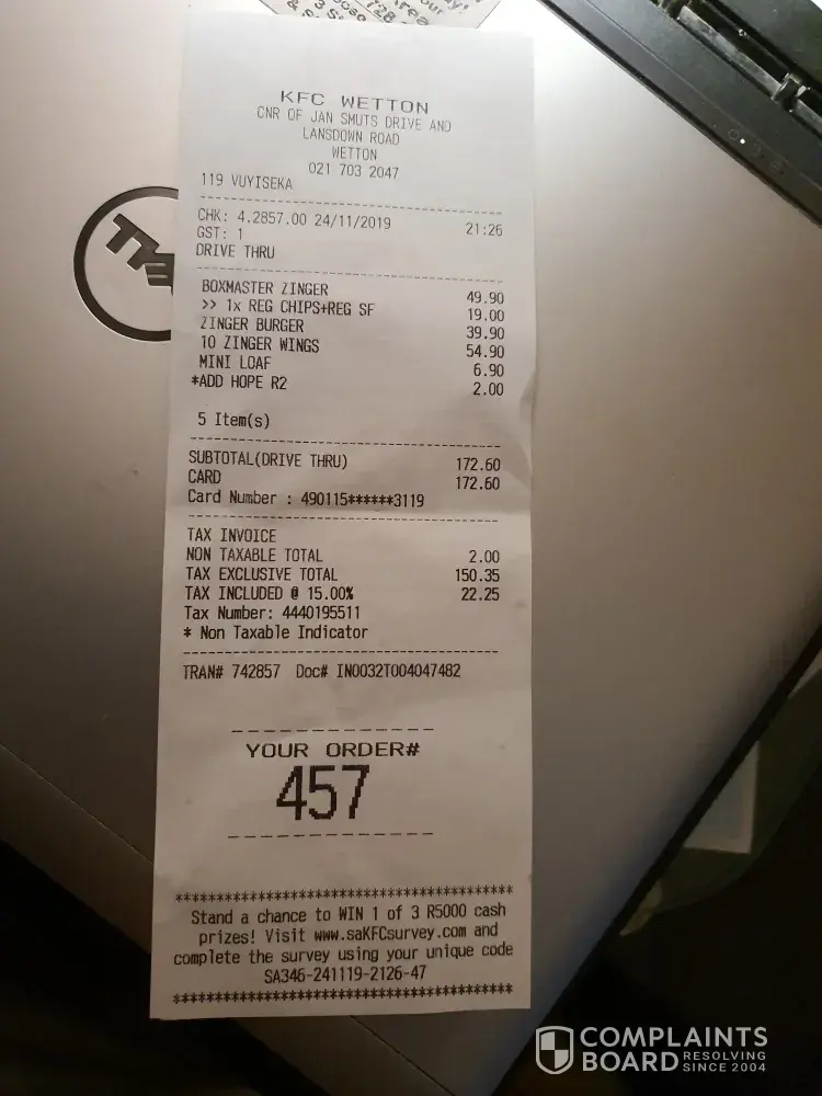 We are disappointed and shocked at the wings we ordered from KFC Wetton drive through