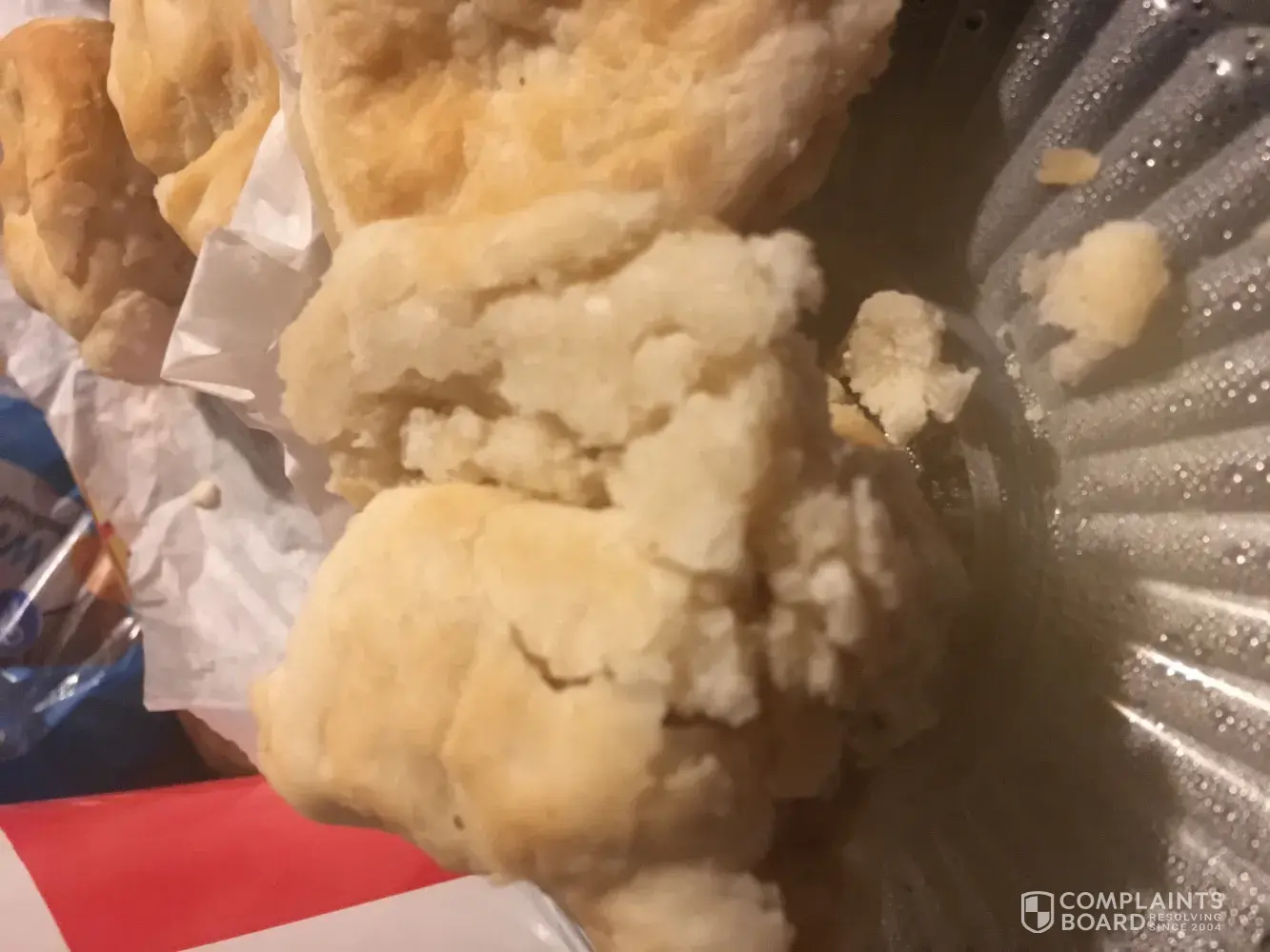 Ordered chicken meal for dinner worked later than I thought. I ordered the 20.00 fill up 8 pieces and 2 sides. I upgraded my wings for thighs. Perfect meal I thought. I got home. I had 4 legs 1 piece if a wing. My biscuits was under cooked and broken and flattened from being doughy. Called them they wanted to only give me 2 thighs. Said that's all I will get. Really. That's not cool. I did take pictures. Sides looks fine Rest will go to dogs