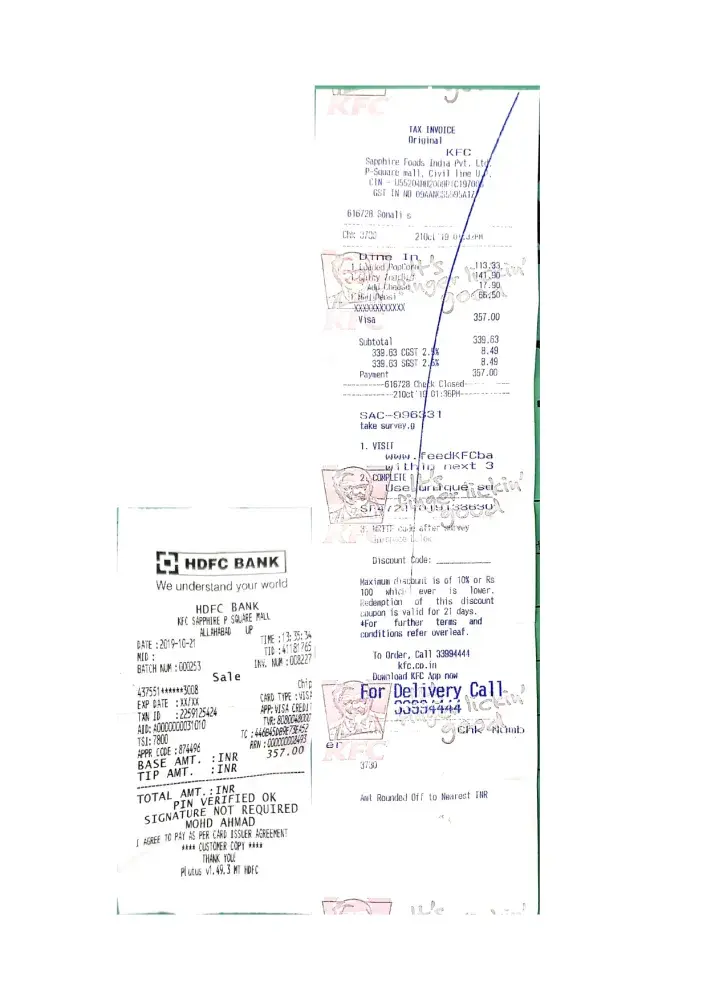 Dear sir I went kfc ones in a week and the always charged excess amount yesterday I went kfc and buy some food my bill was 356.61 INR RS. And I pay the bill through my credit card and they charged 357. INR RS. so I want to raise complaint against kfc if I am making a payment through my credit card why they charged extra amount.
