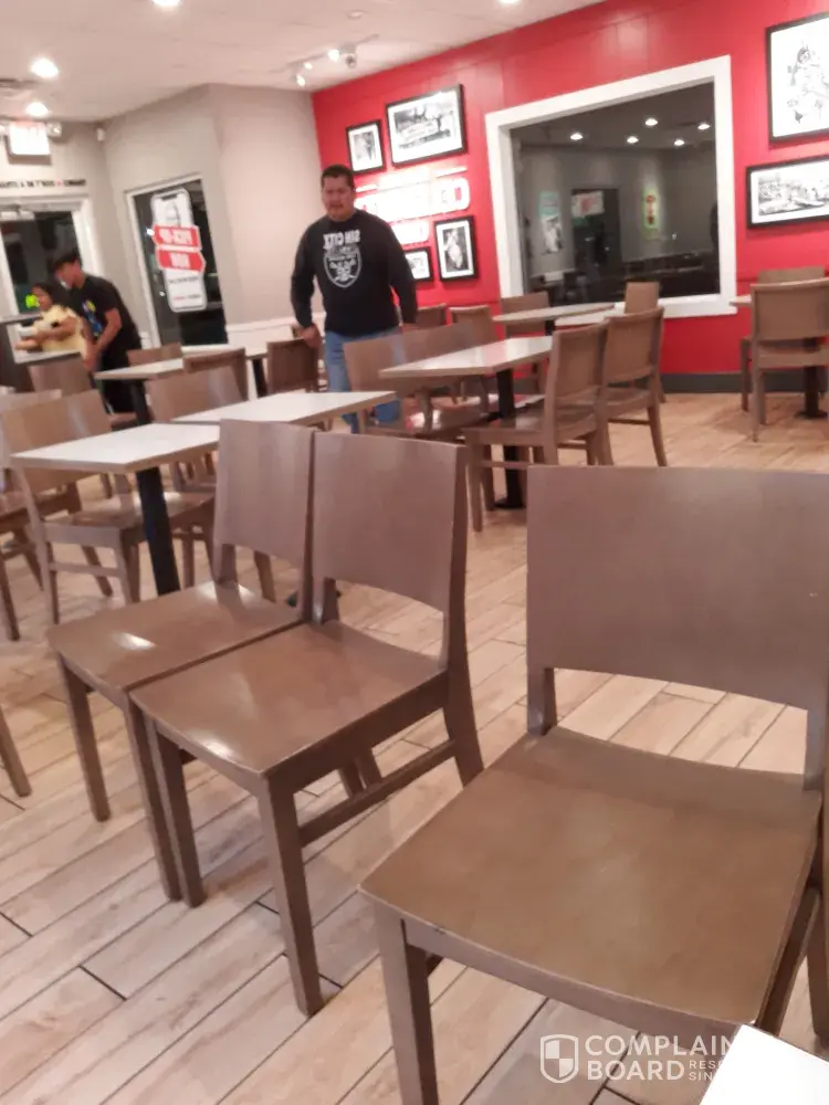 It was barely between 7 or 8 and this staff already had orders all wrong looks likes theres no structure between staff had really upset customers the dining area I seen that a team member put chairs across the dinning area I don't know why is that for but also I witnessed customers from drive thru with bad orders its upsetting due to the fact that there...