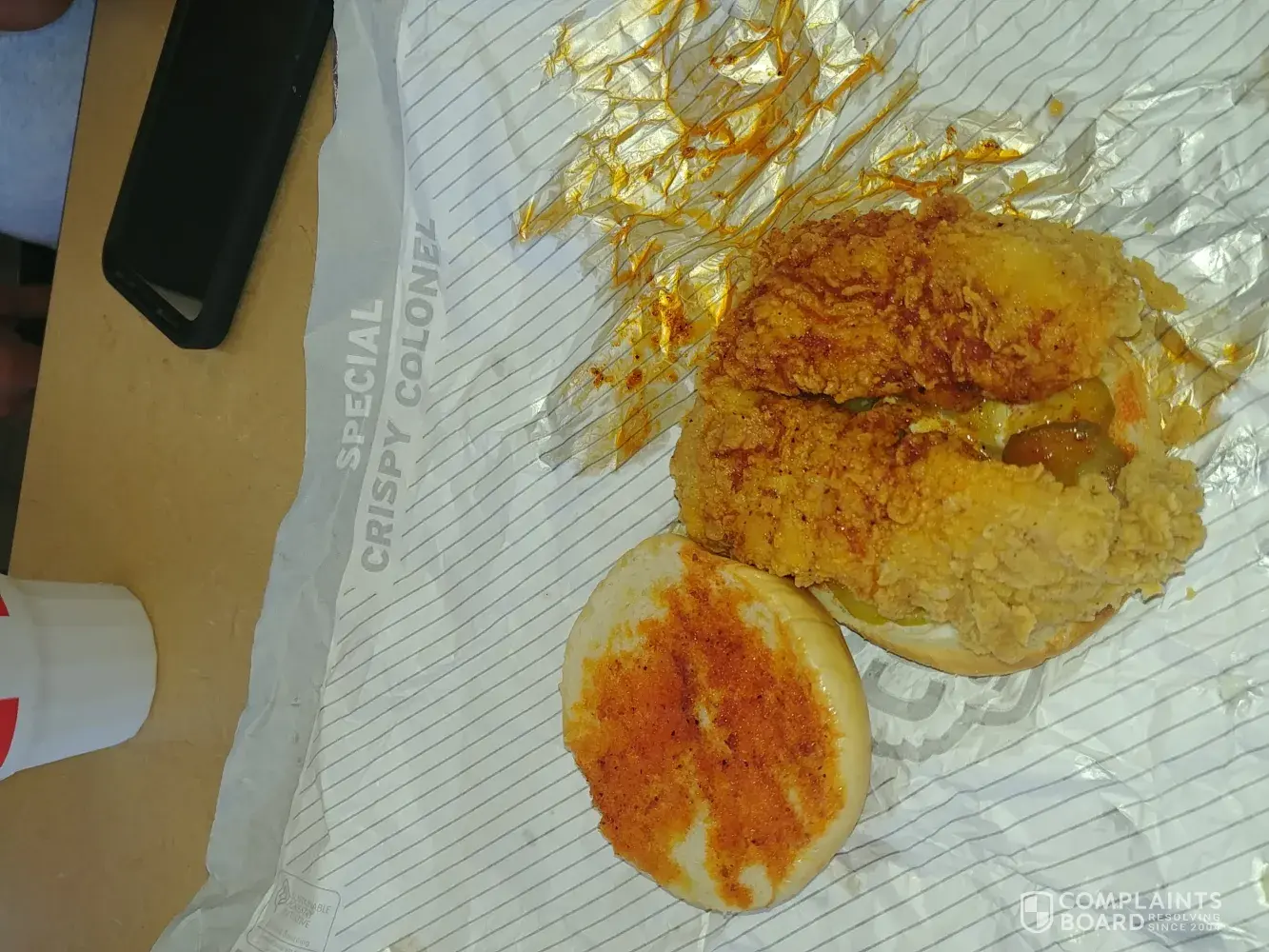 First of I want to say how I love the Nashville hot sandwiches. But at 301 E Lake St, Mt Shasta, CA 96067, two time now I have gotten the Nashville hot sandwich combo and the quality control has been a real let down. It's been inedible photos attached I hope you do something about this I would hate to boycott kfc over just not getting decent food. Thank you for your effort and commitment to delivering delishish food.
