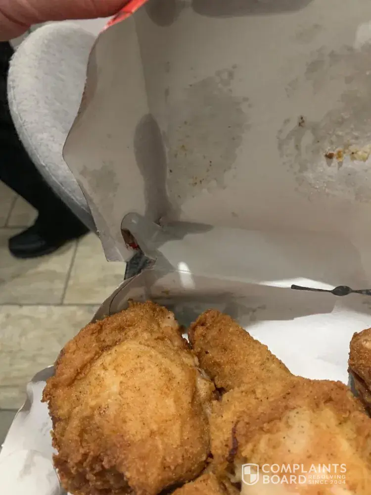 It takes me an hour to drive to the mall and back home and my airtime I wasted cost money, upon my arrival I spoke to Zola and she said she needs to call the supervisor Andrea. Andrea the supervisor only wanted compensate me a street wise 3 and replace my 10 zinger wings. I was unhappy 😒 because my drive time and my my meal was unpleasant and it's not the bloody 1st time, to me as I work in retail that tells me she does not care about the employees who work there cause that means customers can go to hell. KFC is based on satisfactory and happiness on enjoying your meal. But she does not give a [censored] about customers. I requested my full meal to be replaced after all I have been through seeing I have kept quiet the 1st time about my satisfactory and she said no 🚯. So now I report this matter to the health department and to the newspaper 🗞, cause I have had it now. I tried to be nice and drove all the way to KFC and I also I have the previous emails of the burger se attached pics and pics now of my incident