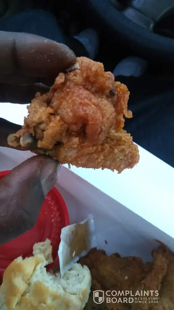 Read full complaintchicken is real greasy taste like old grease don't have the kentucky fried chicken taste to it