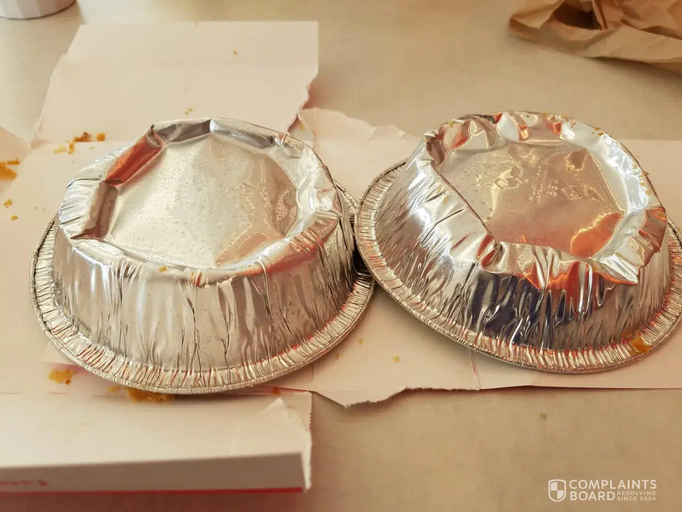 On both occassions my wife and I order chicken pot pies and both times the tin plates are bent in, and we feel like that is to put less filling in the pie.