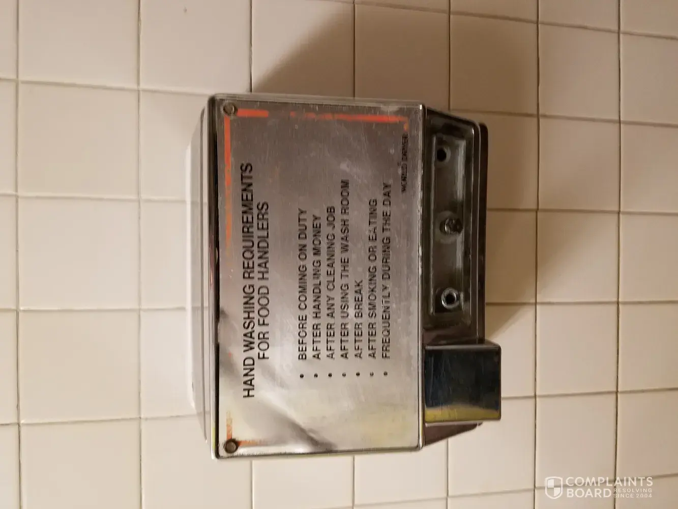 Rt 30 Pa highest tourist traffic area. Stopped at KFC long john silvers for fish. 15 min into waiting they came out and said fish was frozen. At least another 10 min went by before food came. We were originally only ones dining. Others came and went while we waited. I used ladies room and was appalled at condition in this area of Lancaster county, pa. Not once in an hour did anyone clean dirty tables or floors from previous guests. Toilet paper holders broke, I had to chase my roll when it fell to floor, soap dispenser wide open, handle broke off hand drier. Employee standing out in dining area shooting breeze with 3 visiting patrons. I will continue to stop at Burger King from now on when passing through this area. Thought I would try something different with my dad. 2 cod and shrimp and 1 sodas at nearly 17 or 18.00 was extreme for this experience. Also it looked like a child painted the bathroom. Paint was really sloppy and splashed everywhere. One would not know they were in a commercial business. Pictures show yellow paint slipped, 2 different greens and yellow all over stall door in ladies room, soap dispenser condtion, handle missing. Quite a mess and not becoming to your franchise