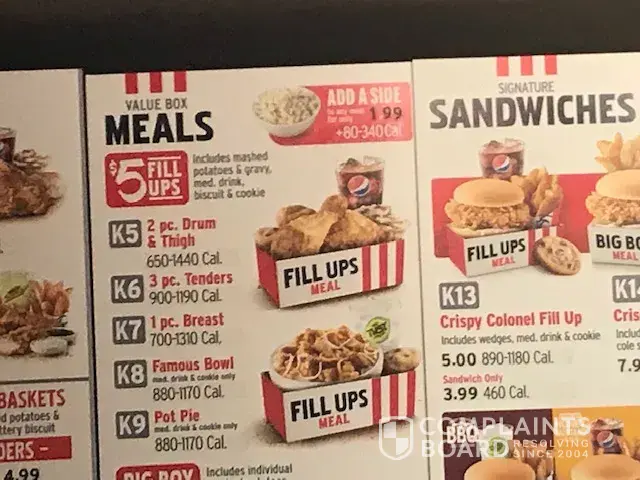 Went to KFC at night to order some food to go. I checked the posted menu in the restaurant and the menu specific showed the following: