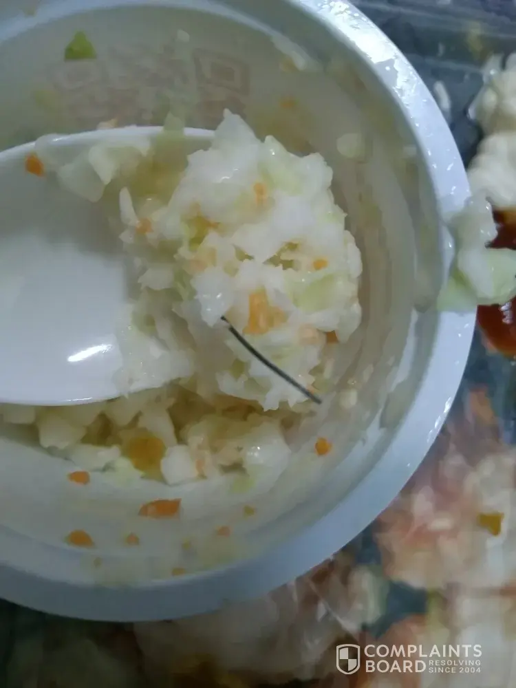 Today I have been bought super dinner meal from KFC- Lulu hypermarket jubail branch -KSA, and first I found a piece of steel wire in coleslaw and the chicken has under cooked and even after few bites I felt stomach ache and then loose motion and I'm going to attache the pictures for your reference .and unfortunately the receipt copy has been taken back when I collected the order from the counter. It is really disappointing that this small piece of steel wire might threatened for life if it swallowed with coleslaw. I need your urgent assistance to take action against my file complaint . And even if you want I can do examine of this meal in laboratory on my own and give u the results and 100% sure this undercooked chicken is unhealthy