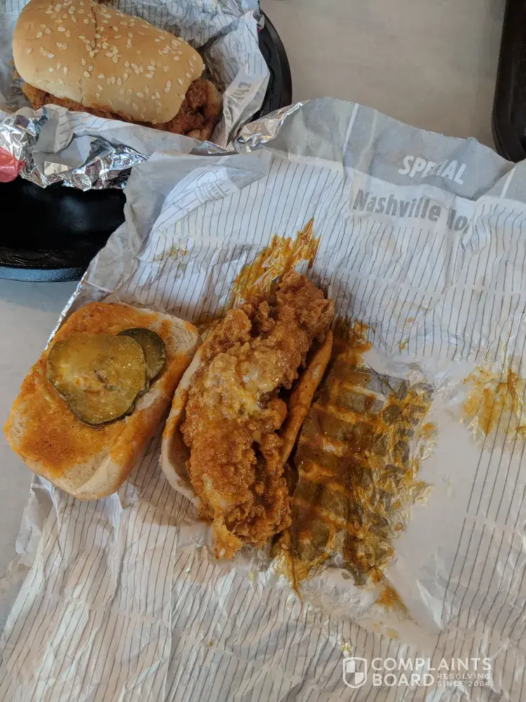 This was by far, the worst restaurant experience iv'e ever had. The food and service was terrible. When we went inside to order, everything was running smoothly. after we received our food, we were going to ask for some sauce. At the counter, I waited for 5 minutes before having a word spoken to me asking if I had a "big box order". I said no and asked for the sauce. The girl then said okay and turned away, where I was ignored for another 5 minutes before asking someone else to get me sauce. After 10 minutes I finally got it and returned to my table. After opening our food, we got 2 chicken little's that were incorrect. we wanted the Nashville hot, and the other in honey mustard BBQ. However, both were plain. A simple mistake and I thought nothing of it. I took them back and asked for a replacement of the food I had ordered. The cashier rolled her eyes at both me and my fiances, sighed and said to give her a minute. Instead of replacing it, they took the sandwiches back over the counter and put the sauce on. The sauce wasn't even on the chicken, rather it was on the wrapper, which was now soaking the bun making is soggy and disgusting. At this point, we were very frustrated. We took them back again and told them we wanted a replacement for the sandwiches as they were not made correctly. At this point the sandwiches were cold, soggy, and not even desired. Once again, instead of them replacing the sandwiches, they took them back over the counter again and decided to drown both sandwiches in the sauce and throw them on the counter at us. I was going to ask for my money back, but I was not given a receipt for my purchase. We sat at the table and ate what we could. While eating, we noticed they were talking and kept looking at us and shaking their heads as if we were the problem. I've never experiences this kind of behavior from employees in a restaurant before, and am shocked at how little they care about their customers. My family and friends will not be returning to this horrible restaurant until this matter is resolved. Nobody should be treated like this. The photos were taken after they were smothered and thrown on the counter without the worker saying a word to us.
