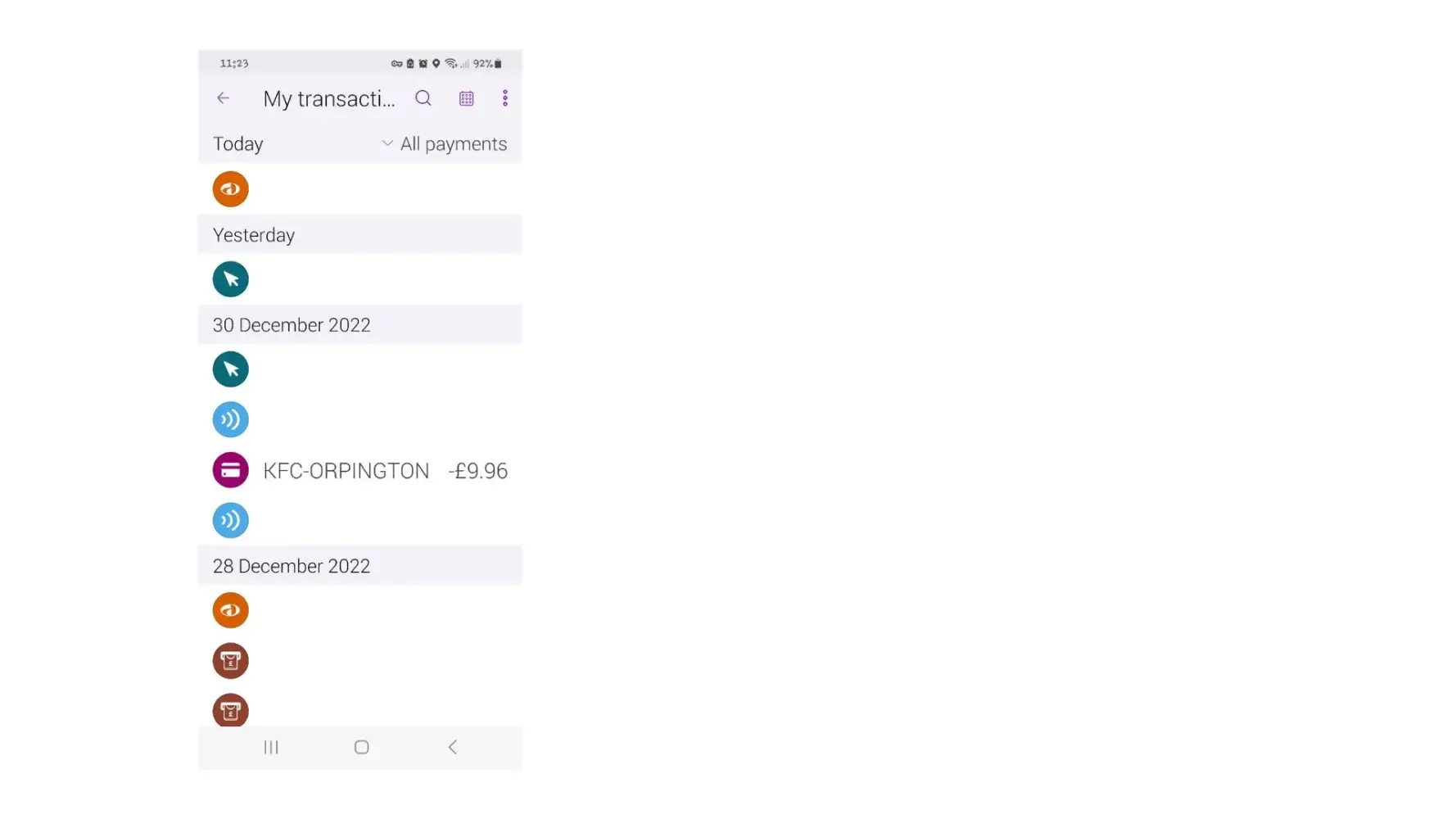 I placed an order through the KFC web to Orpington High Street on 29 December at approximately 6.30 pm. £9.96 was taken immediately from my account. When I arrived 10 minutes later at KFC I was told the order hadn't gone through and even though I showed that the money had been taken from my account, I was told they couldn't do the order.