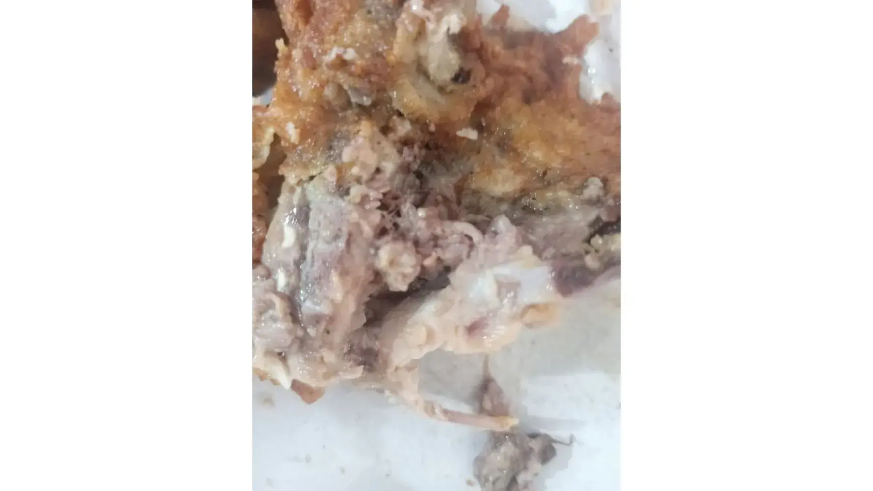 I went to my local KFC and pd 8.00 for a 2 piece meal. My leg was broken and half it’s meat was gone. Wing was so small it was just a ball of bones. There was no meat in my meal and I had to fix food when I got home. That’s my last visit and pic going on Fb.