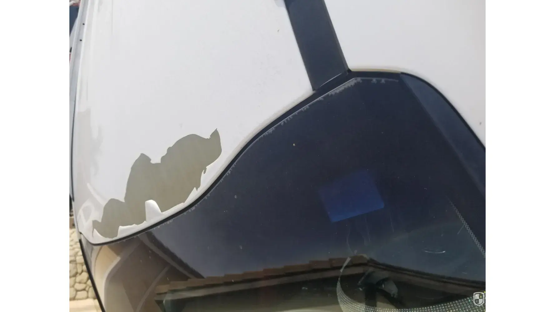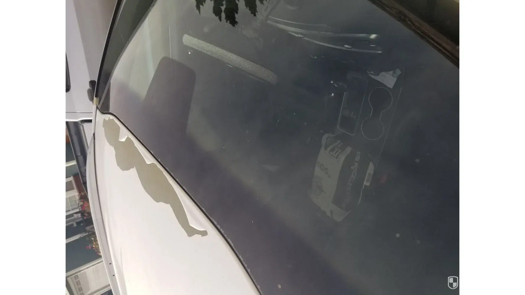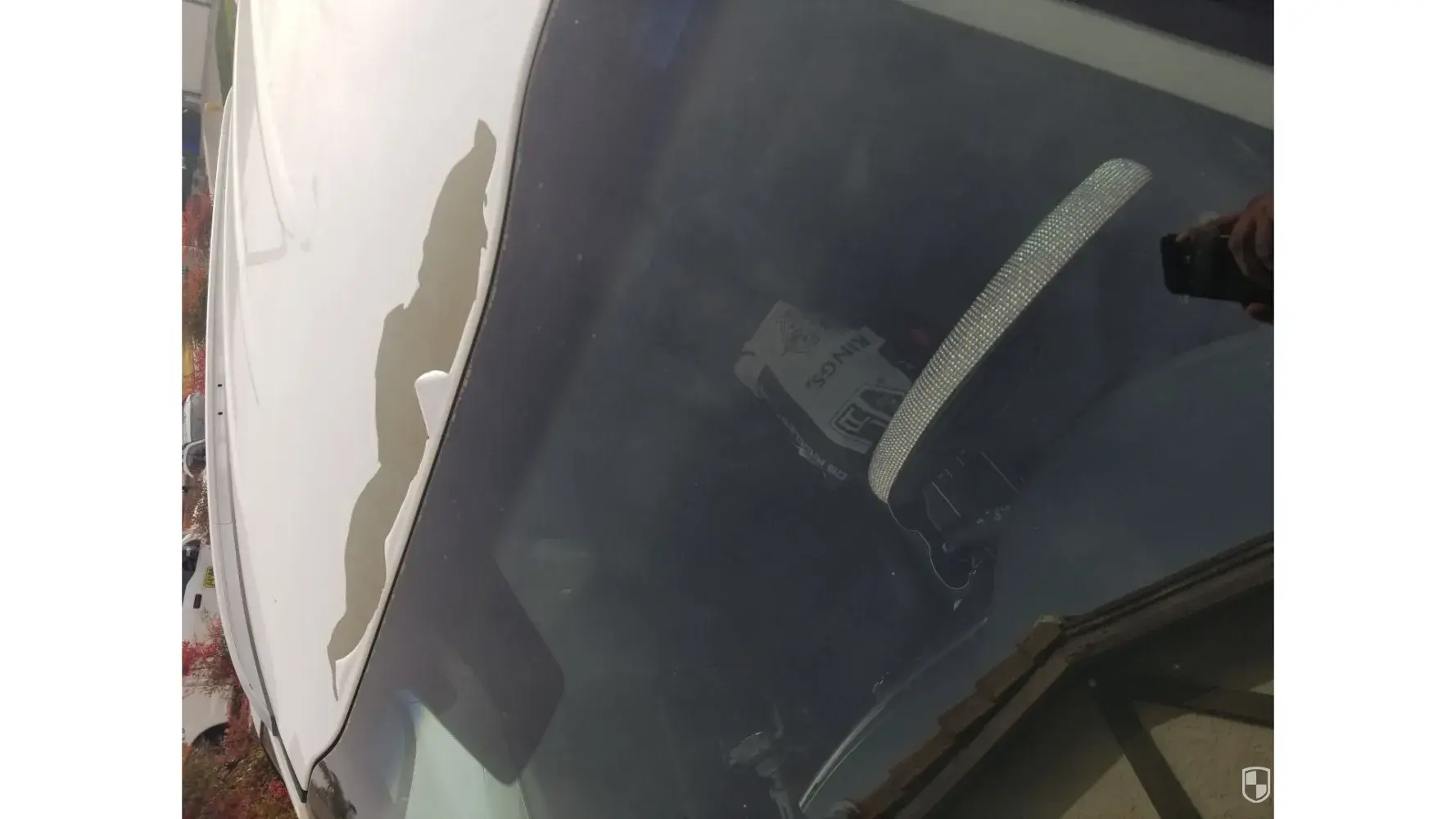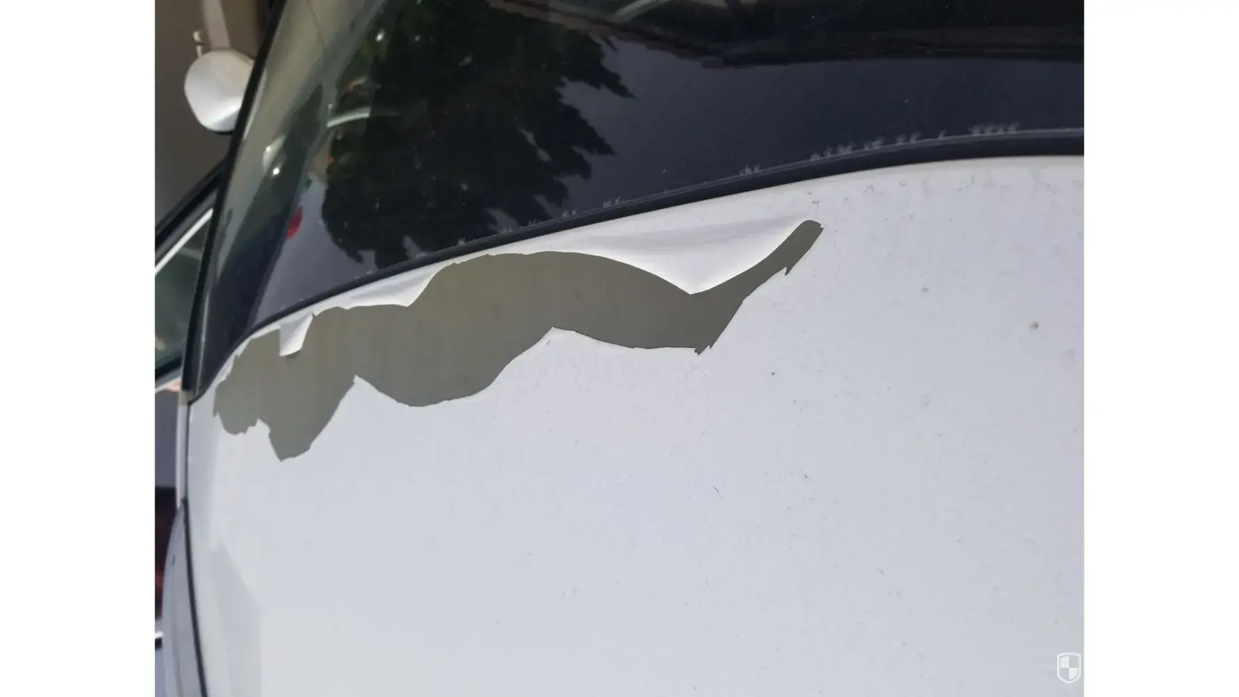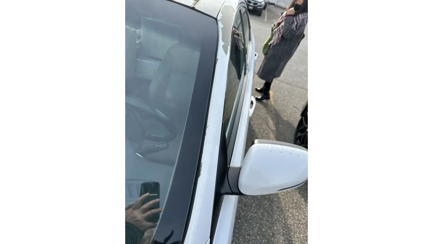 White Kia Sorrento 2014 - peeling paint - hood and side of front window.