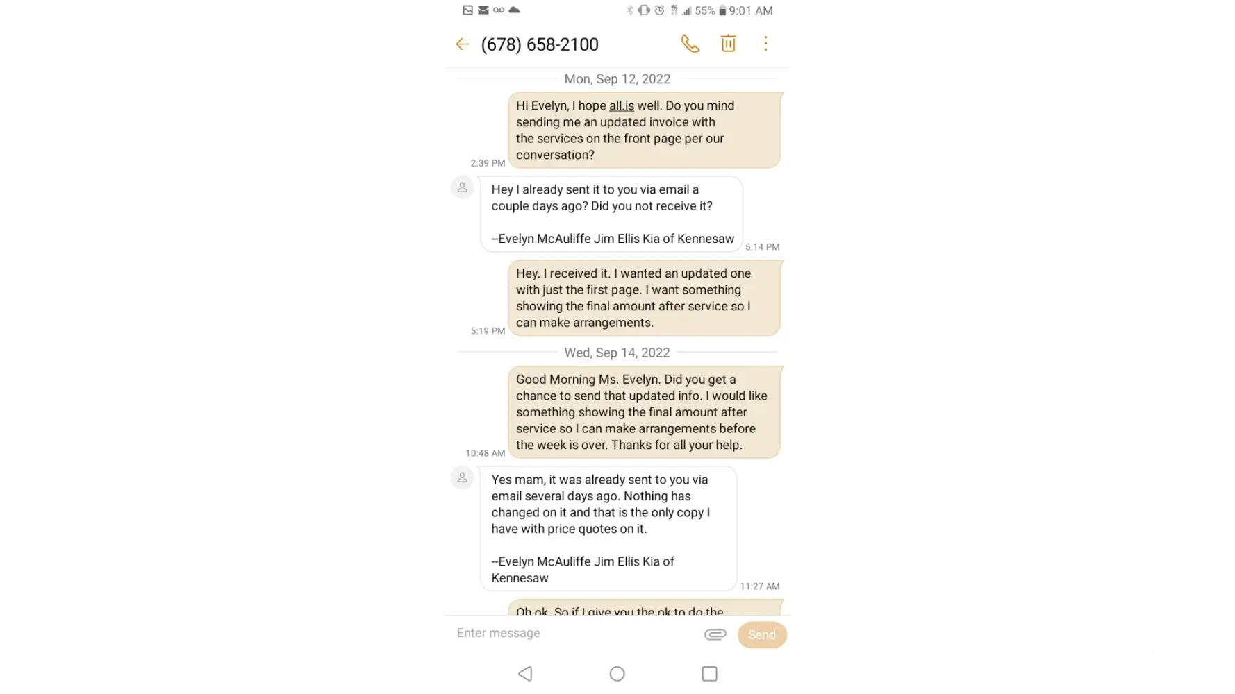 I've had Battleground Kia dealer in Greensboro,NC do a bait and switch on me.I had made a cash bid on a 2022 Kia of 21,000,but they only had ONE black one,and I wanted a white car.The black soul I drove was one that had all the extras.it alerted you when someone came up to you on the sides and slowed the car to a stop if you pulled to close to a car in front.It also had 18" aluminum mag wheels.The manager told me they could have me one in a few days.He called the next day and told me if I'd come by and give him a check for the full amounts,He would have a temporary tag,and road ready when the car came in.I did that.I even took out Xtra insurance for the electrical and computer parts on the car.