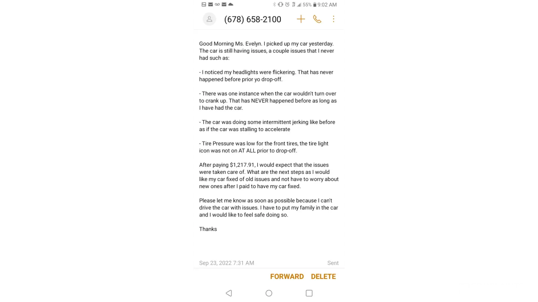 Desired outcome: I would like a refund, my car fixed, and an apology for the way I was treated. I cannot afford to get the car fixed